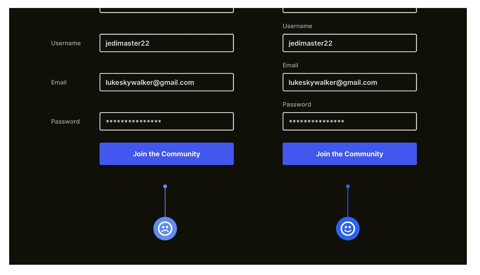 很多產(chǎn)品用 “紅色邊框” 提示表單錯(cuò)誤,但這種設(shè)計(jì)對色盲用戶無效 —— 他們無法分辨 “紅色” 與其他顏色,會(huì)完全忽略錯(cuò)誤提示,導(dǎo)致反復(fù)提交失敗。