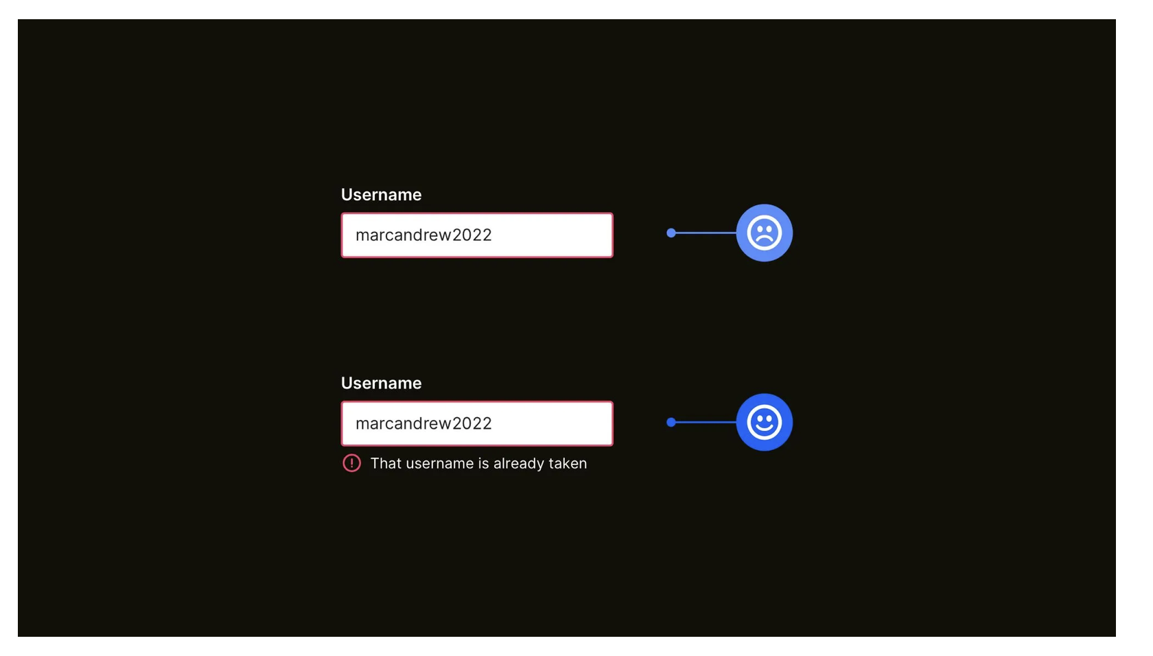 正確的錯(cuò)誤提示應(yīng) “顏色 + 圖標(biāo) + 文字” 結(jié)合:比如輸入重復(fù)的用戶名時(shí),除了用紅色邊框標(biāo)注字段,還要添加 “×” 圖標(biāo),并附上文字 “該用戶名已被注冊,請更換”。這樣無論用戶是否有色盲,都能清晰知曉問題所在,順利修改信息。