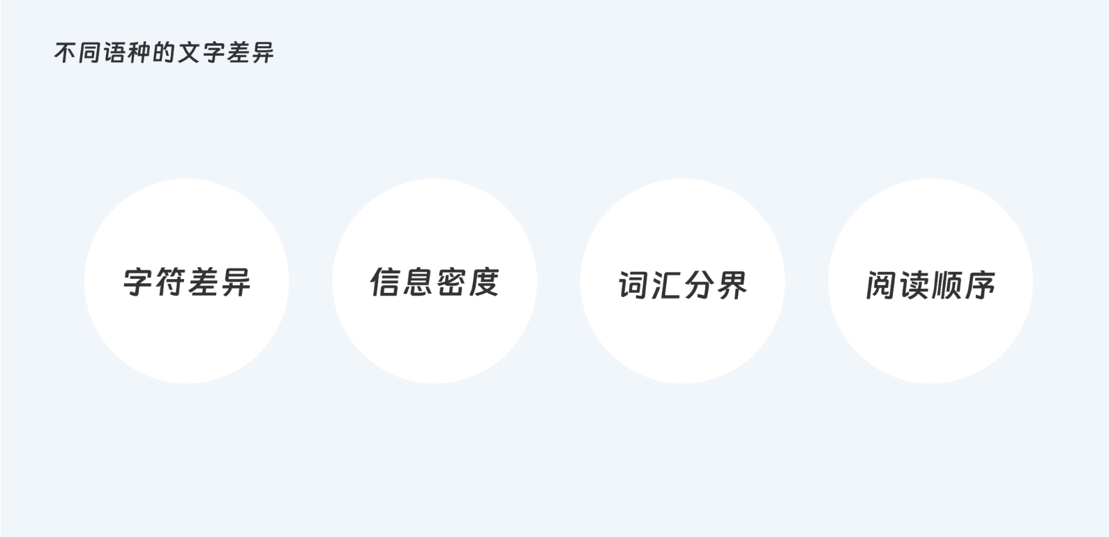 語言文字是文化差異最直觀的體現(xiàn),而其中四類差異對(duì)界面設(shè)計(jì)的影響最為顯著,直接決定了適配方案的方向: