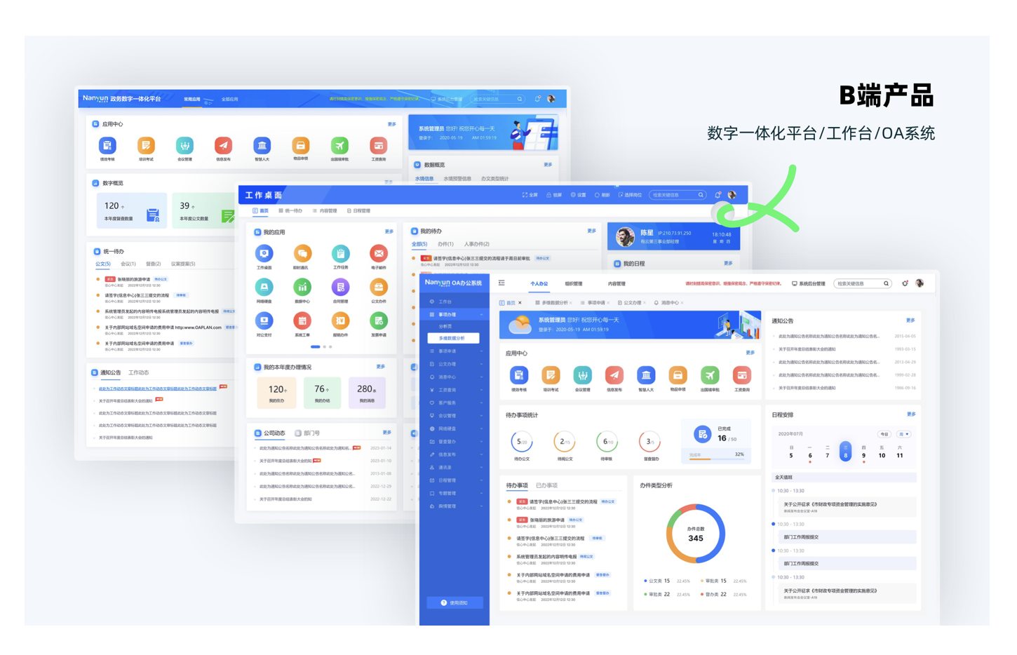 • B 端 UI 設計:全稱 “To Business”,服務于企業(yè)或組織用戶,核心是滿足商業(yè)流程需求。比如 OA 辦公系統(tǒng)、財務軟件、數據監(jiān)管平臺等,設計目標是幫企業(yè)優(yōu)化流程、降低成本、提升生產力。