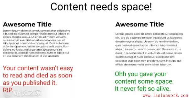 要給內(nèi)容足夠的呼吸空間。在頁面發(fā)布之前,請(qǐng)確保在不同的設(shè)備上測(cè)試留白,以確??勺x性。