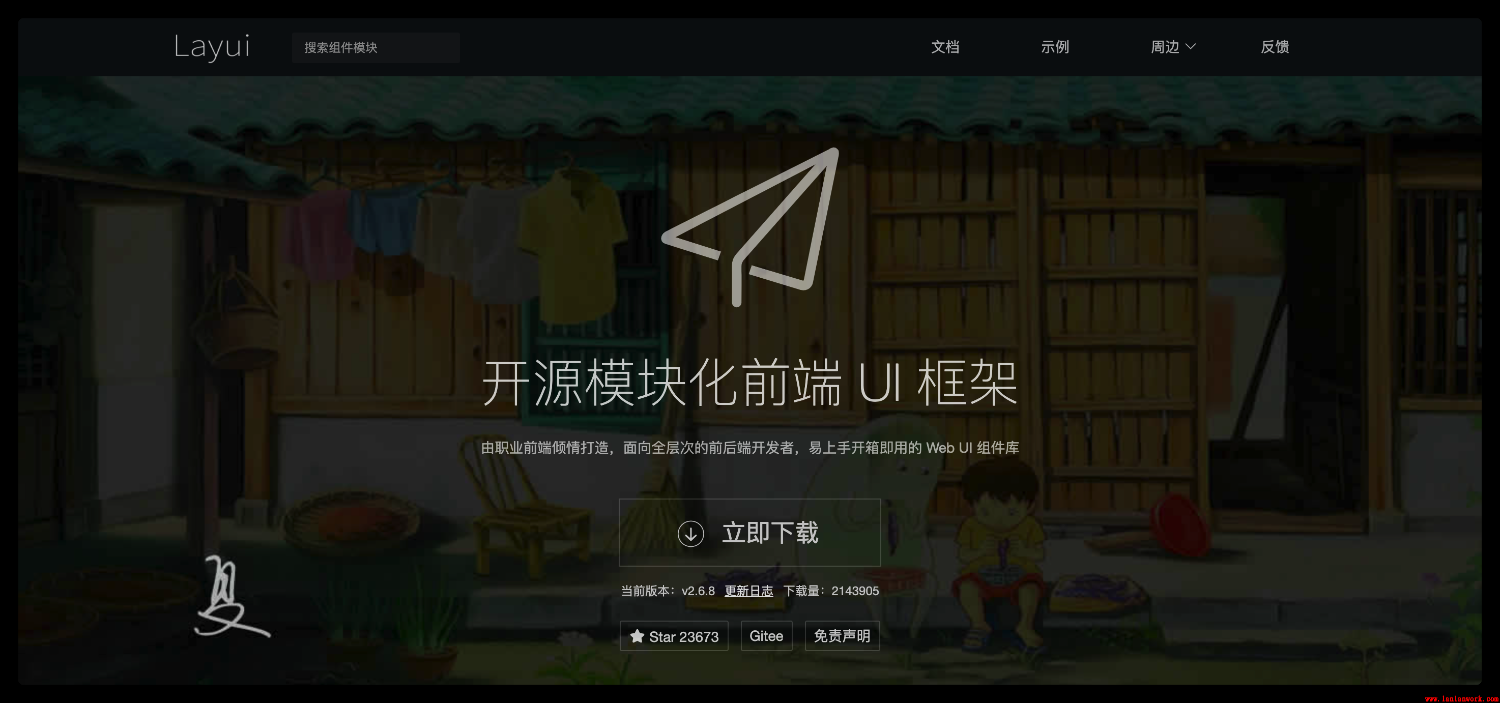 Layui 是一款采用自身模塊規(guī)范編寫的情懷型前端UI框架,遵循原生HTML/CSS/JS的書寫與組織形式,門檻極低,拿來即用。其外在極簡,卻又不失飽滿的內(nèi)在,體積輕盈,組件豐盈,從核心代碼到API的每一處細節(jié)都經(jīng)過精心雕琢,非常適合界面的快速開發(fā)。
